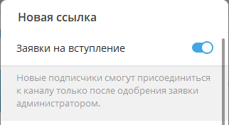 🔑 Подача заявок – если включено, то пригласительные ссылки на лендинге буду создаваться с параметром “Заявки на вступление”