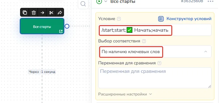 Настройка привет-бота в сервисе
