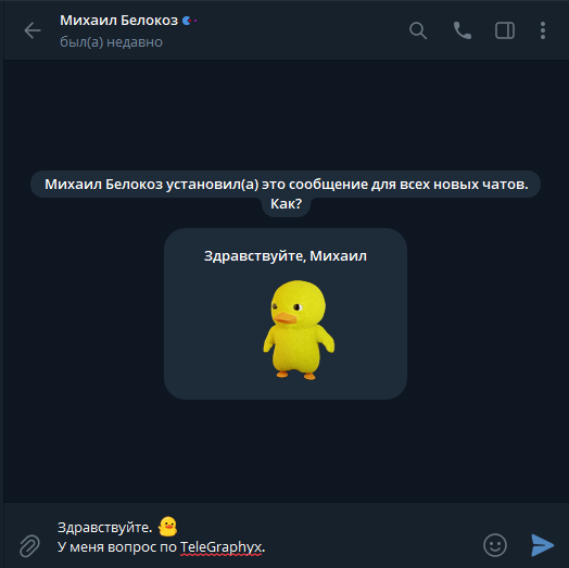 Если вы перейдете по ней, то у вас откроется чат с @tgryx и появится готовое сообщение Здравствуйте. Мне нужна помощь с TeleGraphyx.